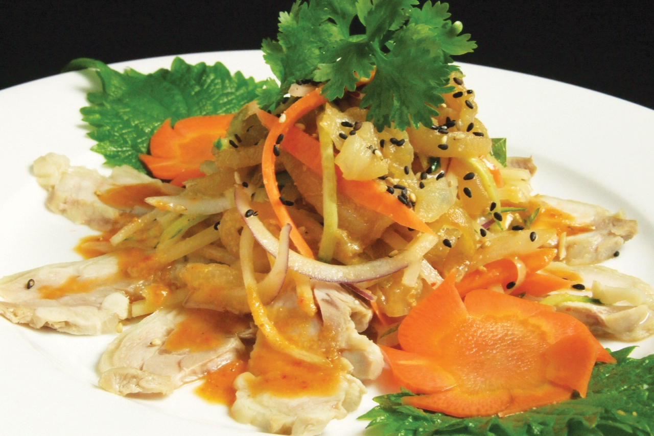 A refreshing Vietnamese salad made with crunchy jellyfish, fresh vegetables, and herbs. Lightly seasoned with a tangy-sweet dressing for a crisp, clean taste.